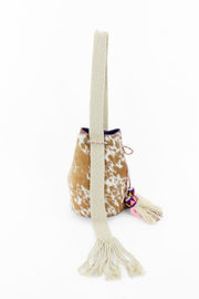 Small bucket bag, hand knitted short hand/elbow/shoulder strap, premium cow-hide exterior, exquisite suede interior lining, braided cord-tie closure with thick...