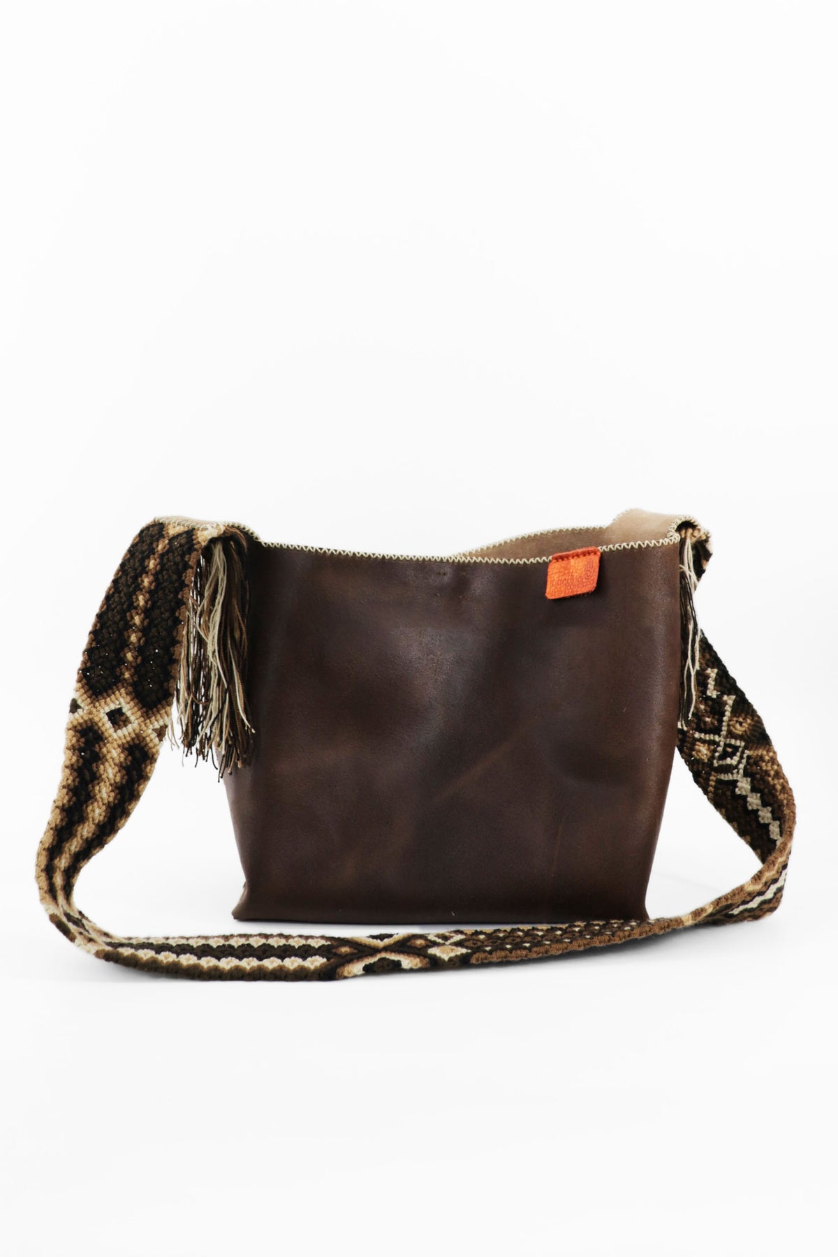 Medium tote bag, hand knitted long-shoulder/cross-body strap, premium leather exterior, exquisite suede interior lining, magnetic snap closure, completely handmade, one-of-a-kind...