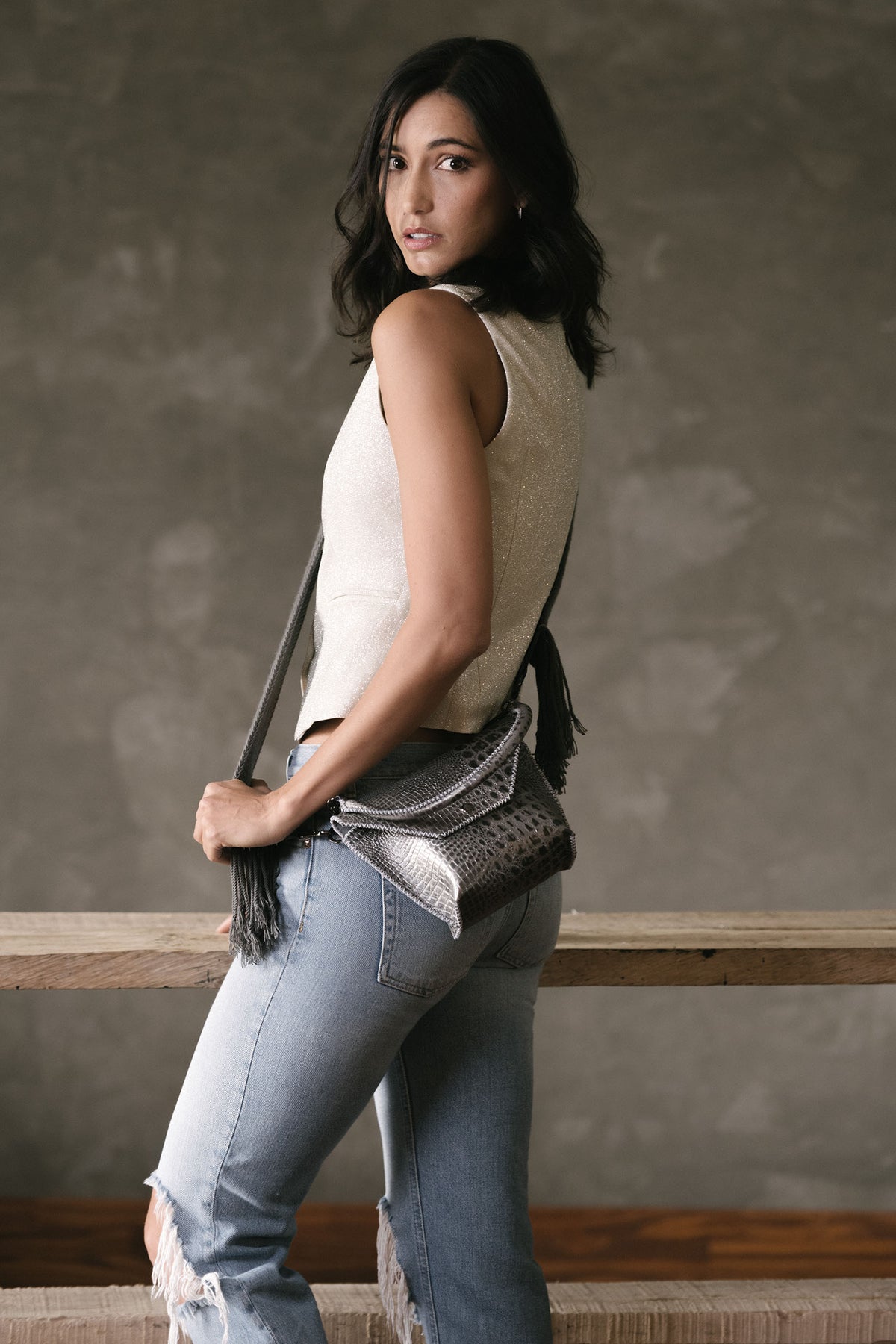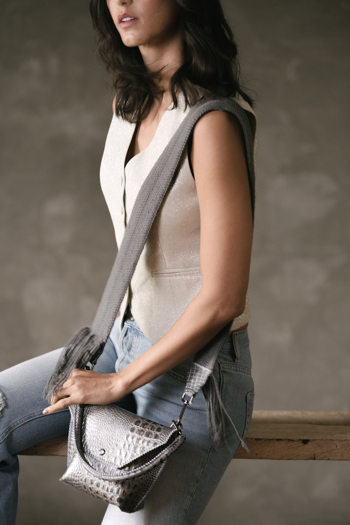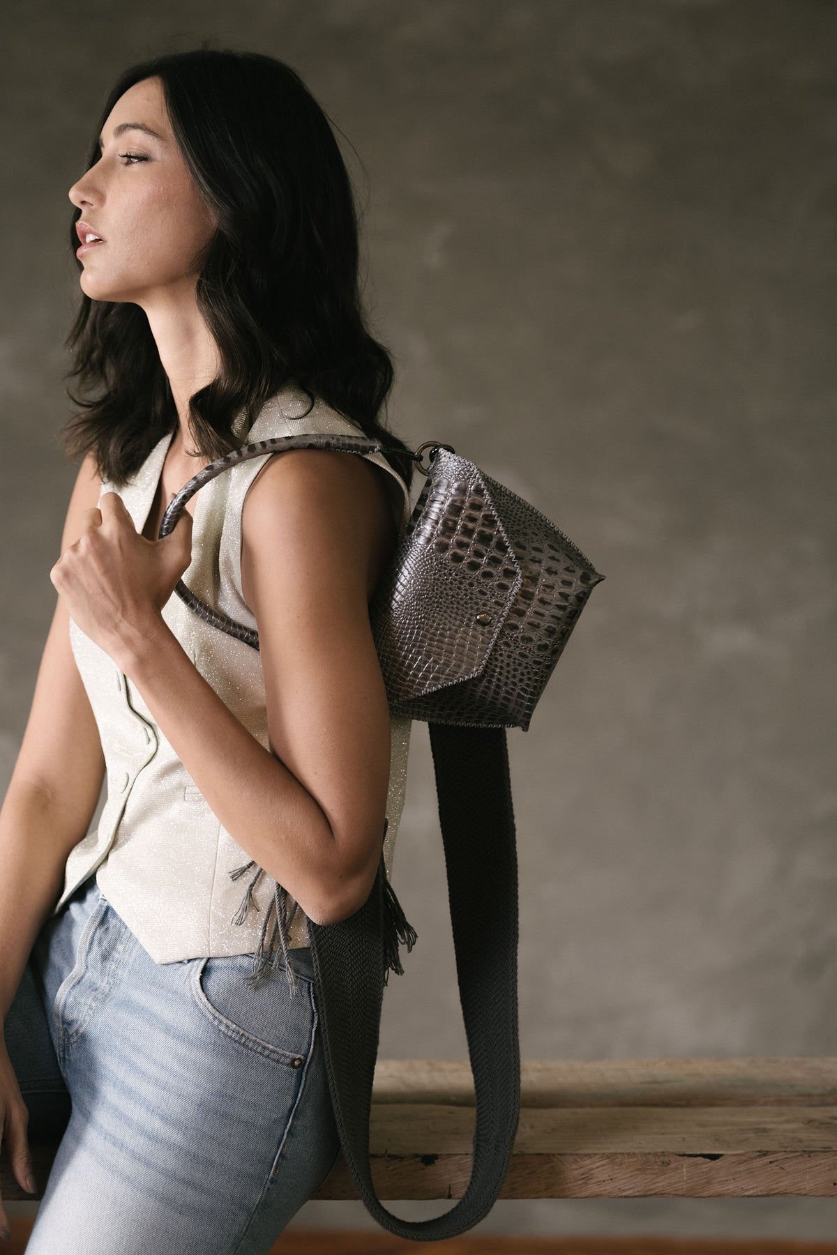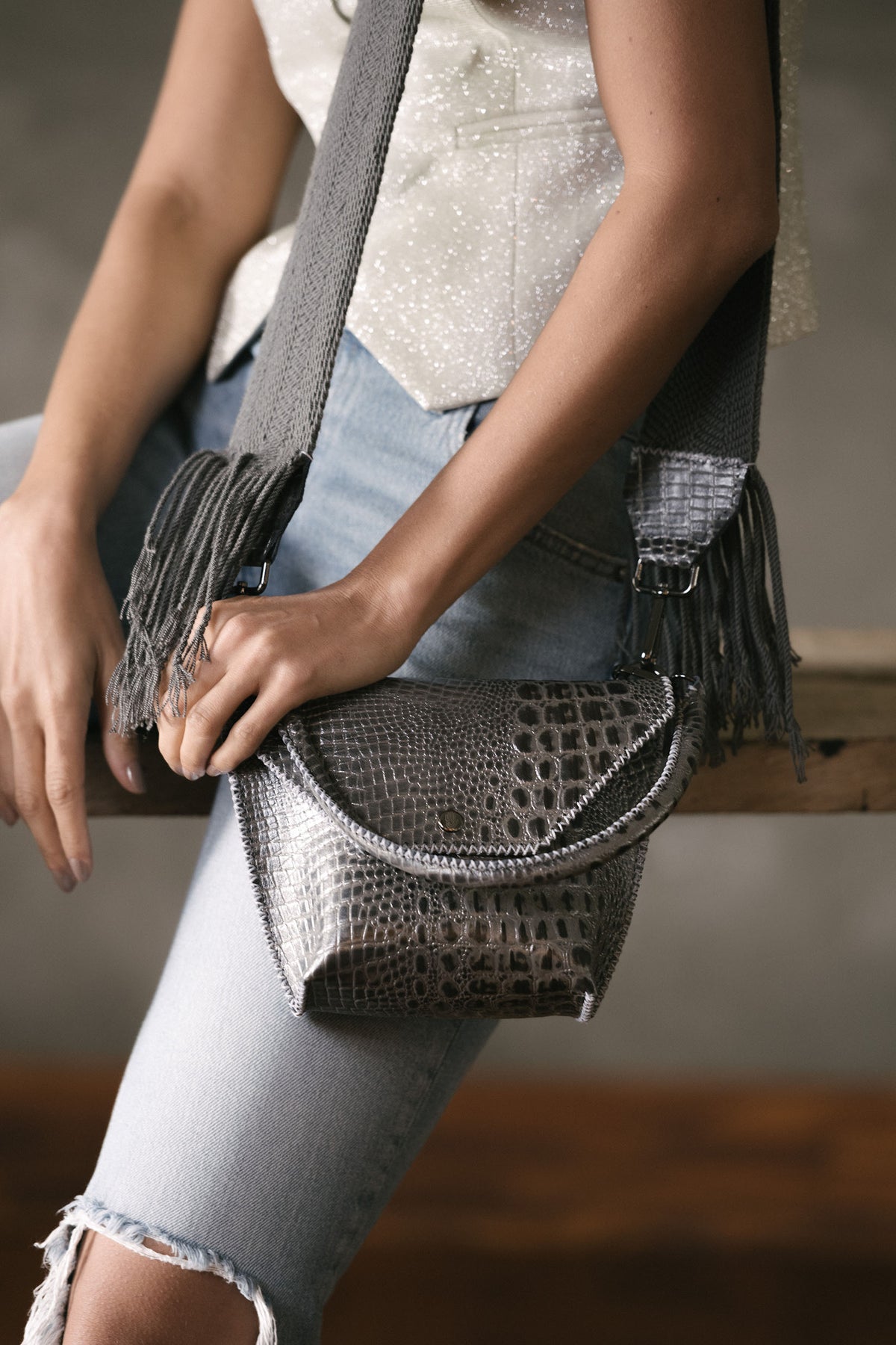 PIAMA TOTE BAG X-SMALL / CROCO GUN METAL- GRAY #340005