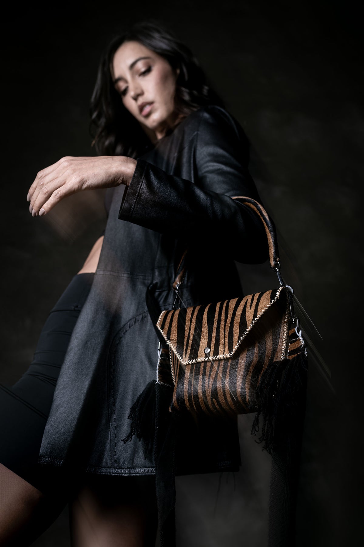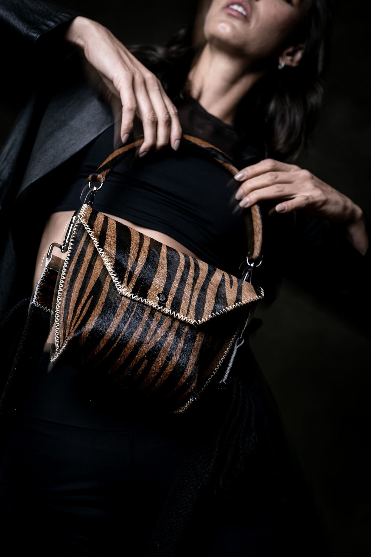 PIAMA TOTE BAG X-SMALL FURRY / TIGER BRW&BLK - DRK MUSTARD #330014