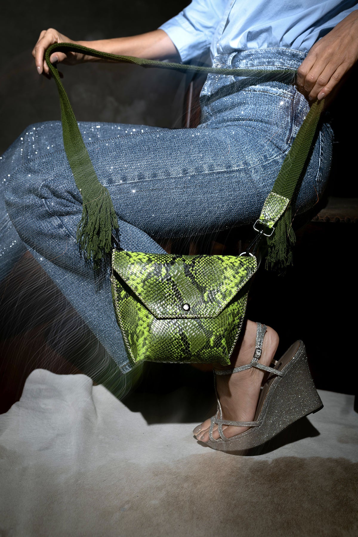 PIAMA TOTE BAG X-SMALL PYTHON / OLIVE&LIME GREEN - LIME GREEN #340009